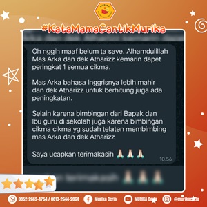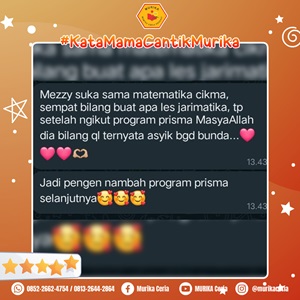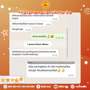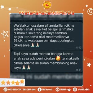 Terimakasih MURIKA atas bimbingan belajar yang sudah diberikan, banyak manfaat yang dirasakan untuk anak kami, terutama dalam pemahaman Matematikanya